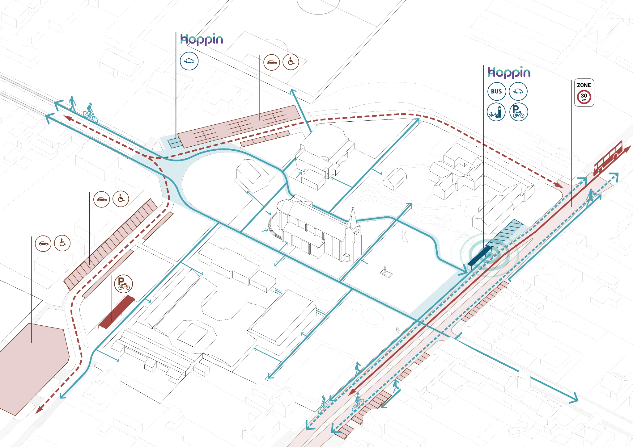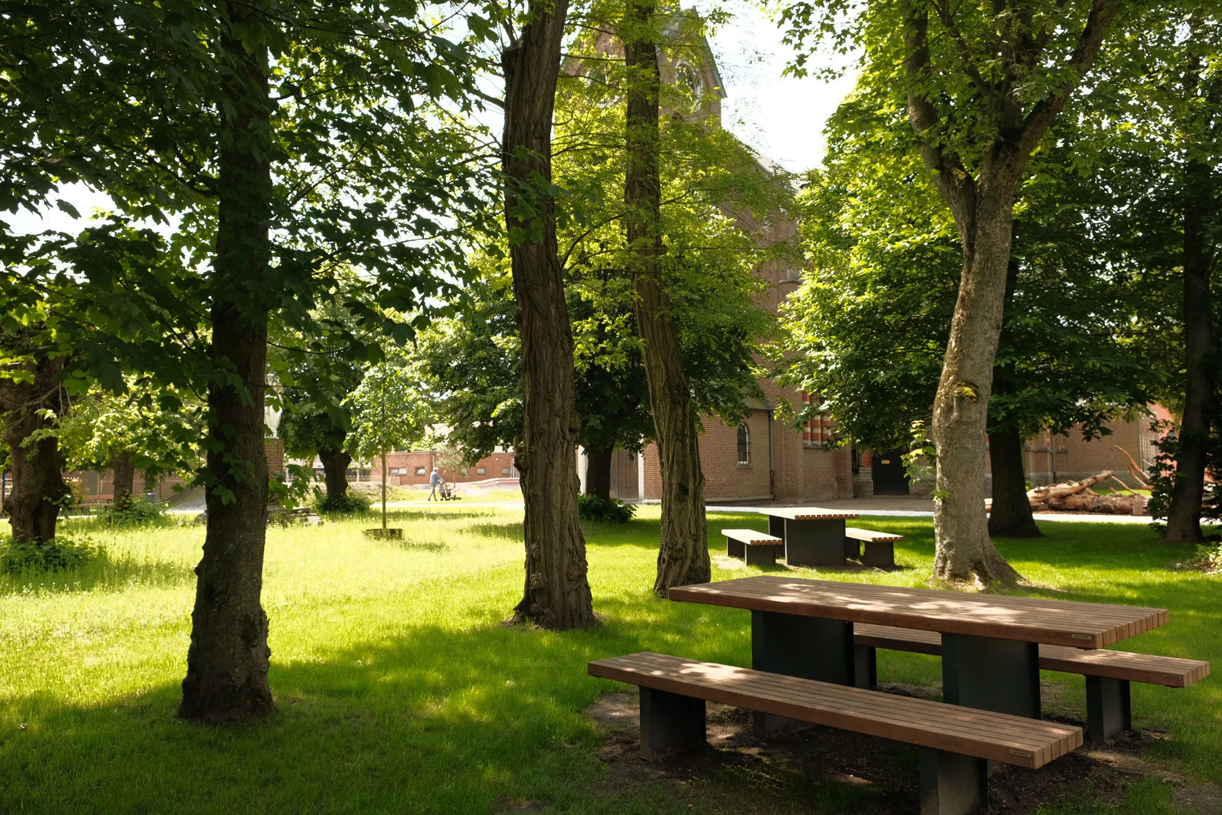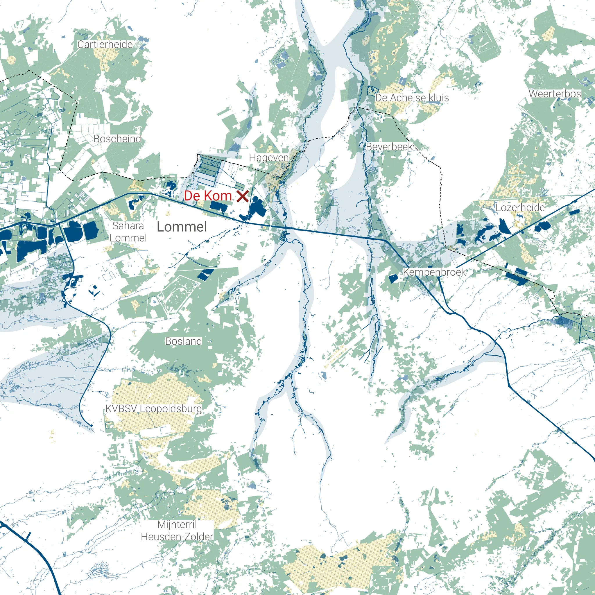 Le réaménagement des espaces publics du Kom à Lommel répond à un défi contemporain majeur : métamorphoser une place de village minérale et délaissée en un cœur de quartier vibrant, capable de répondre activement à l’urgence climatique.